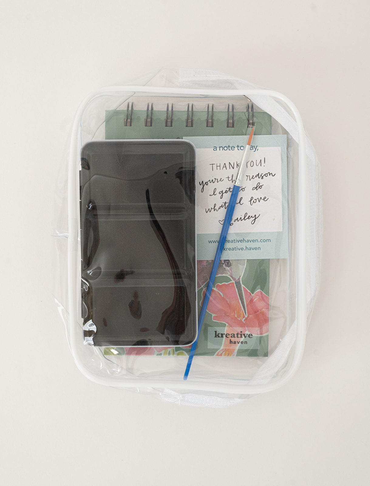Limited-Time Bundle Option: For an effortless painting experience, grab the Little Bit of Summer bundle! It includes the mini book, a 12-color travel paint palette, and a mini brush, all packed in a clear zippered pouch—perfect for painting anywhere inspiration strikes.
