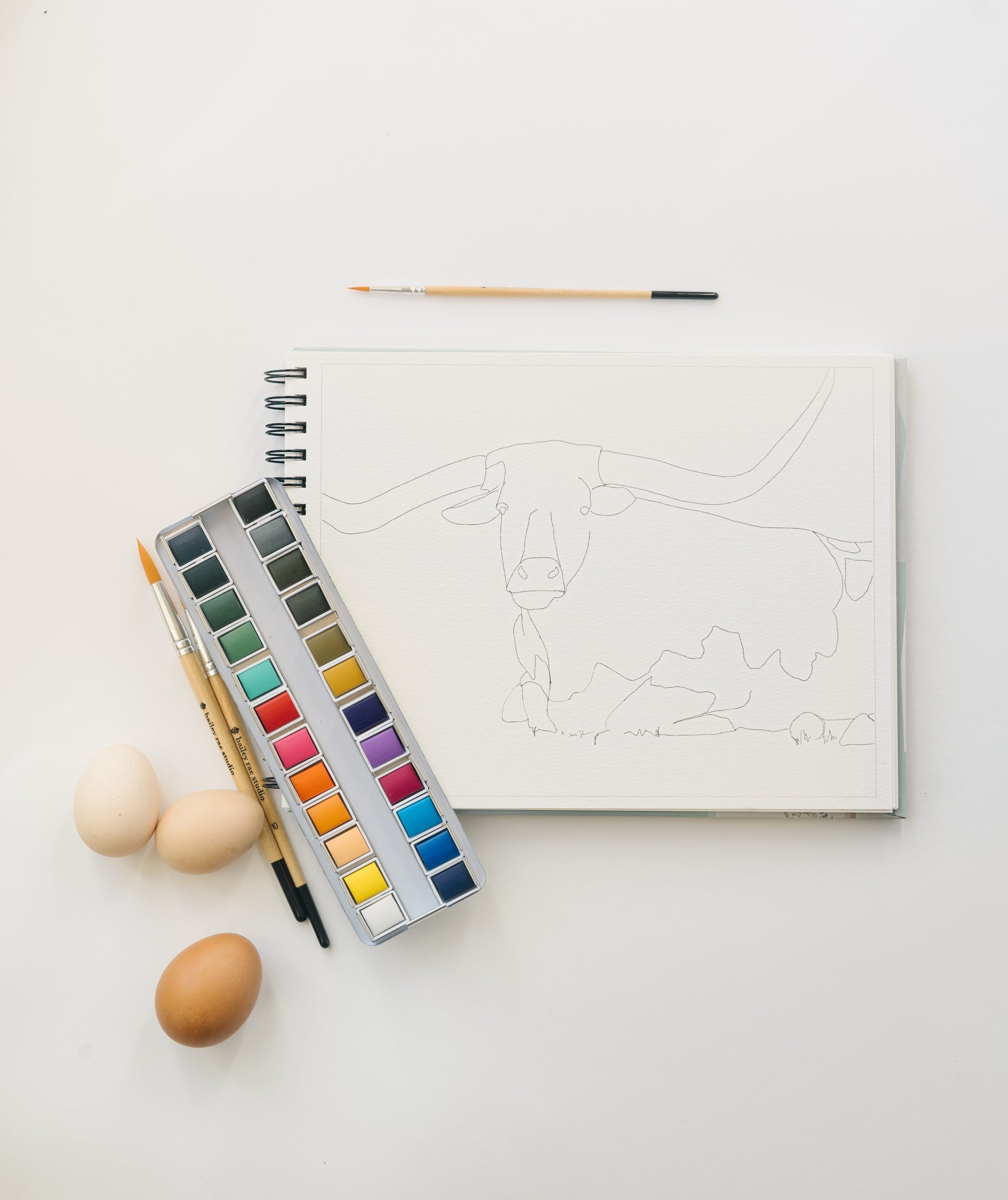 Inside you’ll find my Country Life Watercoloring Book—filled with original outlines inspired by western skies, porch mornings, wide-open fields, and the everyday beauty of country living. Printed on thick 140-lb watercolor paper, each page is ready for you to make your own.