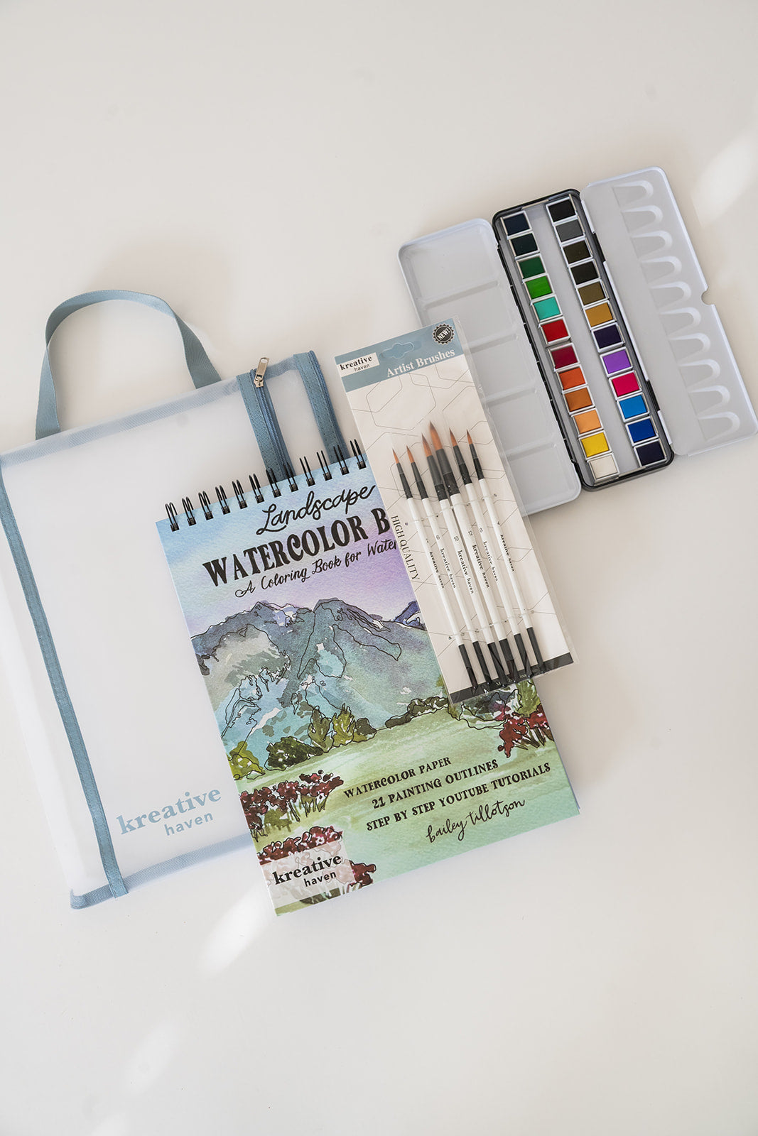 All you need is a watercolor brush, paint, and water! If you don’t have supplies yet, I offer curated watercolor sets that pair perfectly with the books.